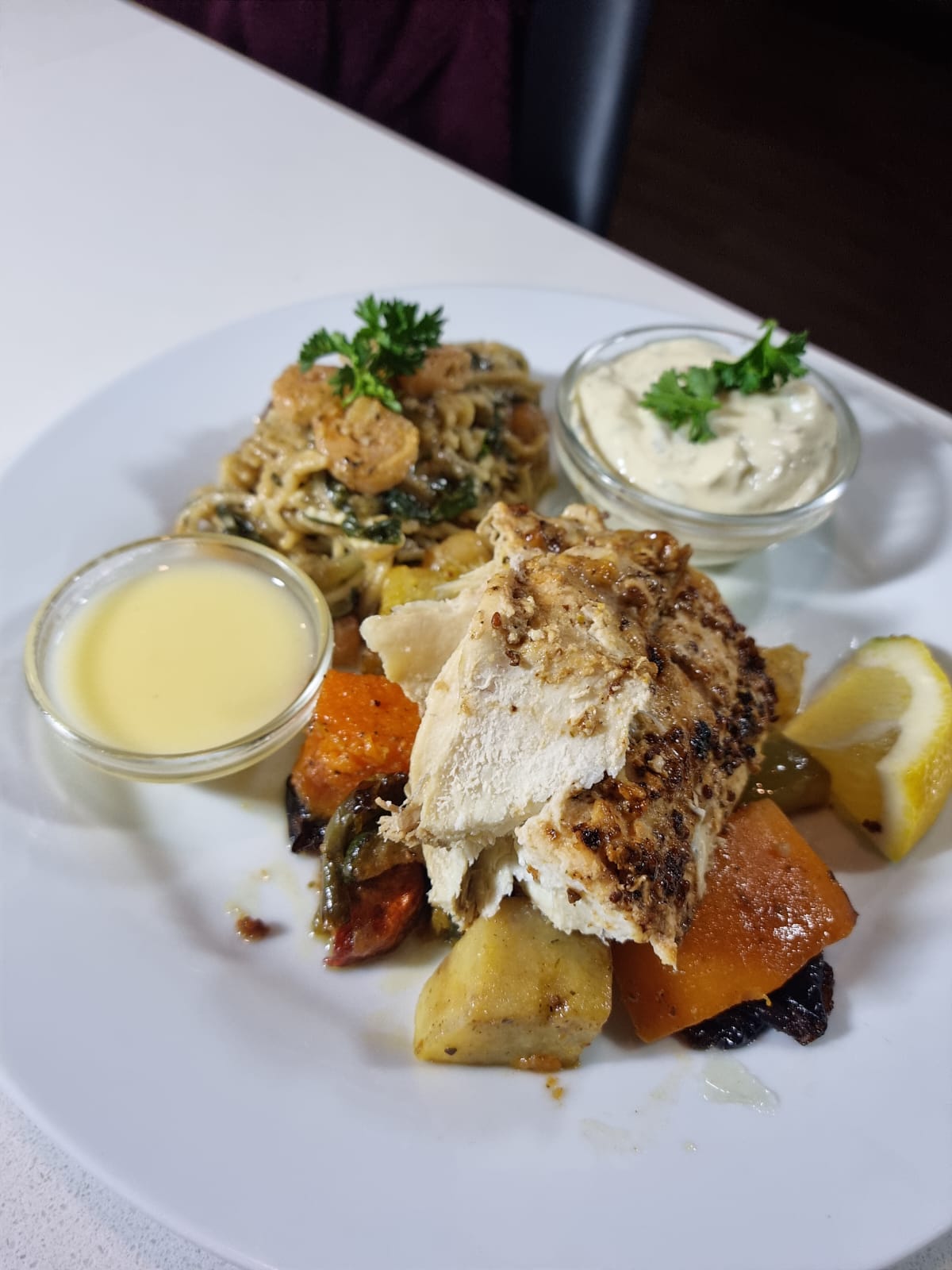 Love making food at my little piece of heaven, Dwarskersbos, West Coast. Tonight we had fresh Kabeljou (with a FDW Craft Spices special sauce) on a bed of roast veggies. On the side we made Prawn, Spinach and Feta with egg noodle adding a home made lemon butter sauce with white wine. And then we made a homemade tartar sauce for added taste 😁 FDW Craft Spices, man you make life feel good!! ❤️